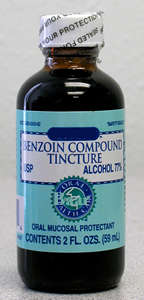 Antibacterial/Antiseptic Cream  Other names: Neosporin, Bacitracin, Neomycin, Polymyxin B, Polysporin, Tripple Antibiotic Ointment, Germolene, Savlon Uses: Prevention and treatment of minor infections in minor wounds. Do not use: If you are allergic to any of the ingredients, on puncture wounds, do not pack into wounds/burns. Instructions: Place on a bandage before putting on a wound while making sure that there is enough cream to cover the entire area. Never touch the bottle to a wound as that can cause contamination. Tincture of Benzoin (see below) Other Names: Benzoin, Compound of Benzoin Tincture, Friar's Balsam, Uses: It is a very sticky substance that helps hold steris and butterflies on. Do not use: If you are allergic to the substance, inside wounds. Instructions: Apply at least .5cm away from the edge of a wound, to the area where you are going to apply steris or butterflies to keep a wound closed.
